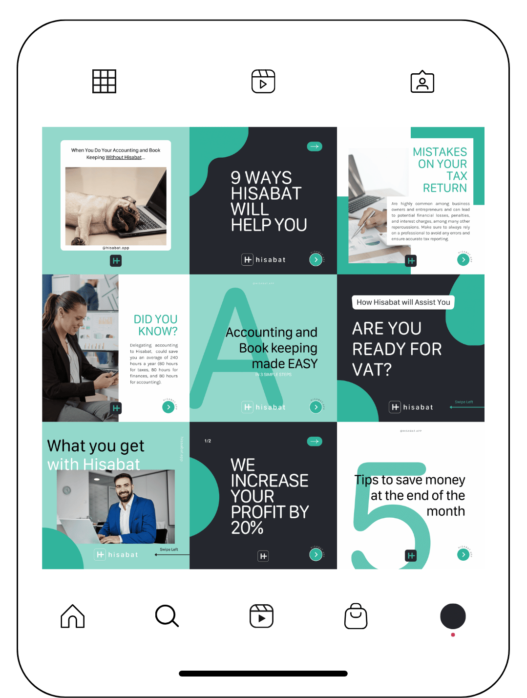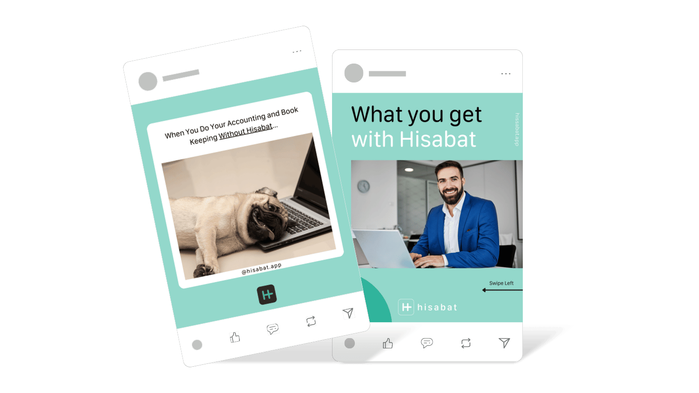 For Hisabat, I developed the social media strategy and content direction to strengthen brand positioning, improve communication clarity, and increase audience engagement. This included defining content pillars, visual tone, messaging frameworks, and posting structure aligned with the brand’s objectives and target audience.